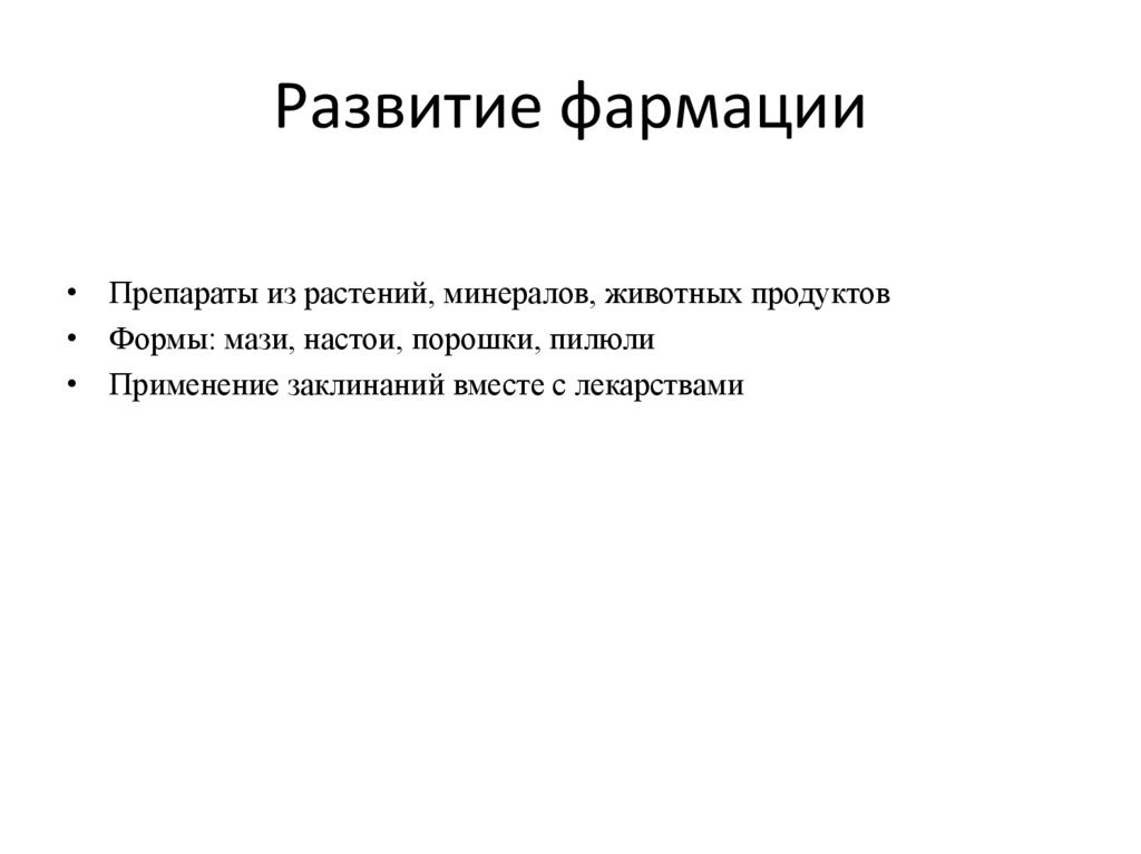 Развитие фармации• Препараты из растений, минералов, животных продуктов