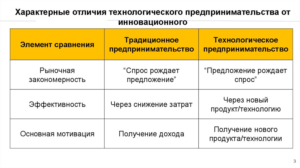 Характерные отличия технологического предпринимательства отинновационного