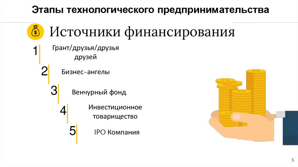 Этапы технологического предпринимательстваИсточники финансирования