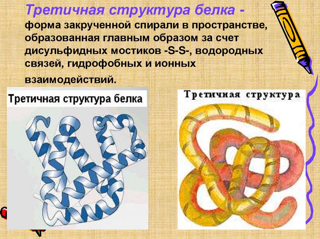 Третичная структура белка форма закрученной спирали в пространстве,образованная главным образом за счет