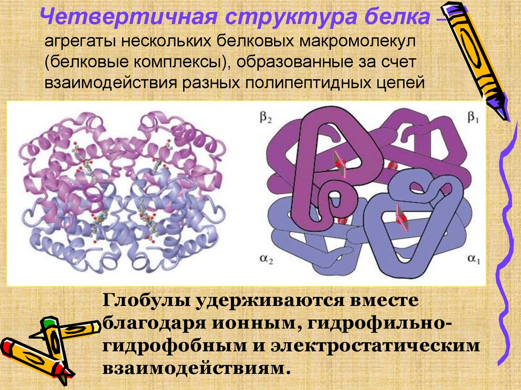 Четвертичная структура белка –агрегаты нескольких белковых макромолекул