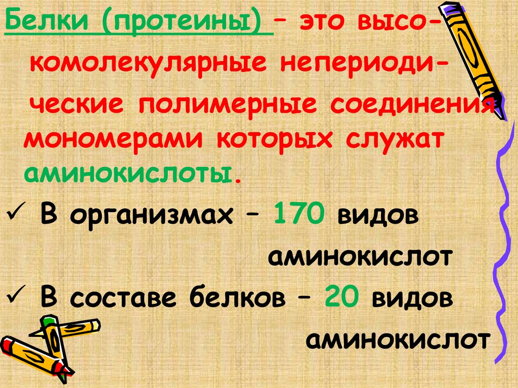Белки (протеины) – это высокомолекулярные непериодические полимерные соединениямономерами которых служат