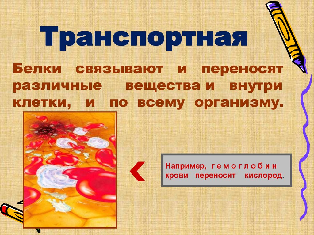 • Транспортная функция белка проявляется впереносe кислорода и углекислого газа с