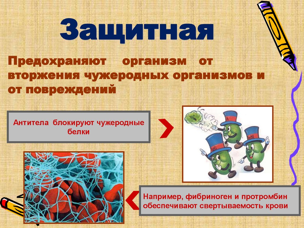 • Защитная функция белка заключается в выработкебелков – антител, уничтожающих возбудителей