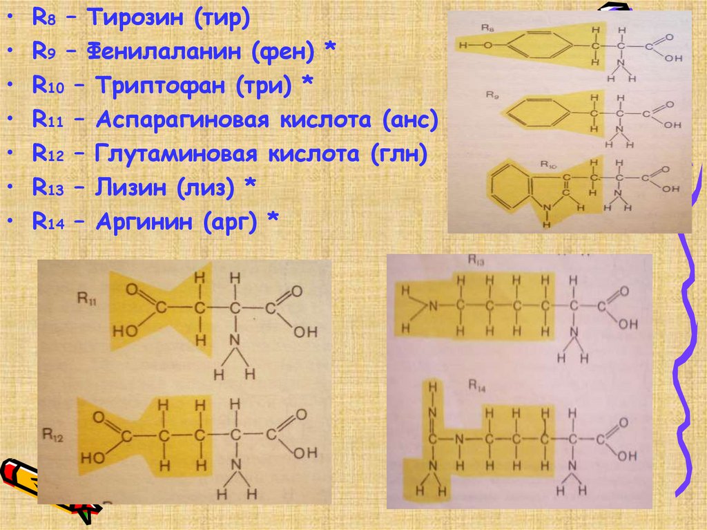 • R15 – Гистидин (гис) *• R16 – Аспорагин (асп)