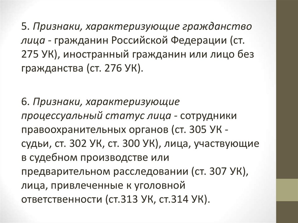 5. Признаки, характеризующие гражданстволица - гражданин Российской Федерации (ст.