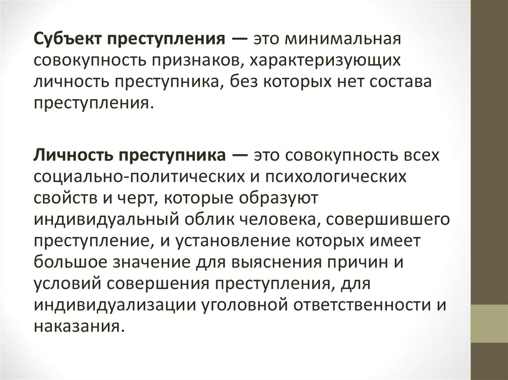3. Вопрос 1. Понятие и содержание субъекта преступления, его соотношение с личностью преступника