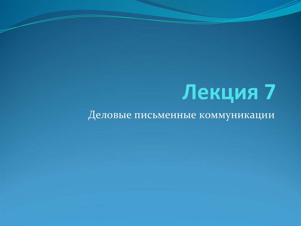 Лекция 7Деловые письменные коммуникации