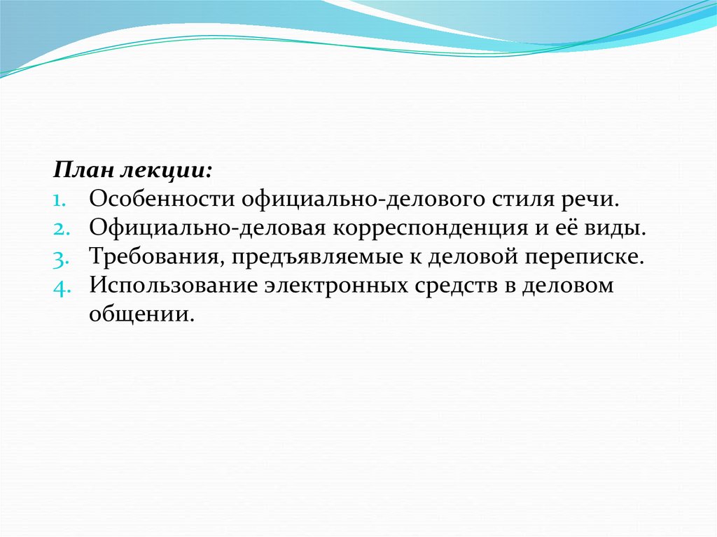 План лекции:1. Особенности официально-делового стиля речи.