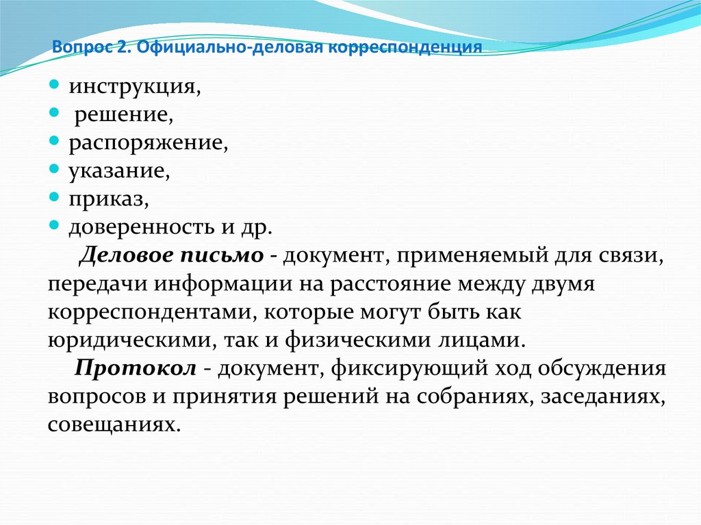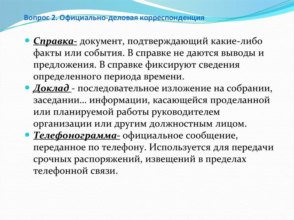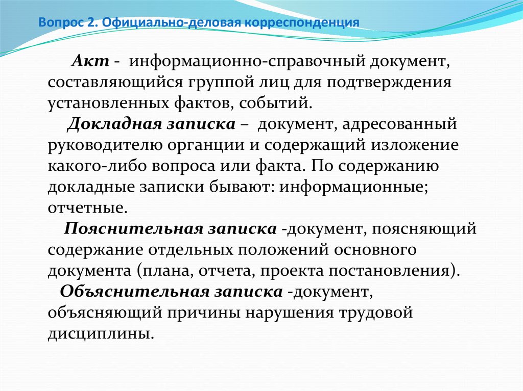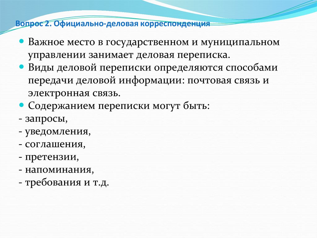 2. Официально-деловая корреспонденция и её виды.