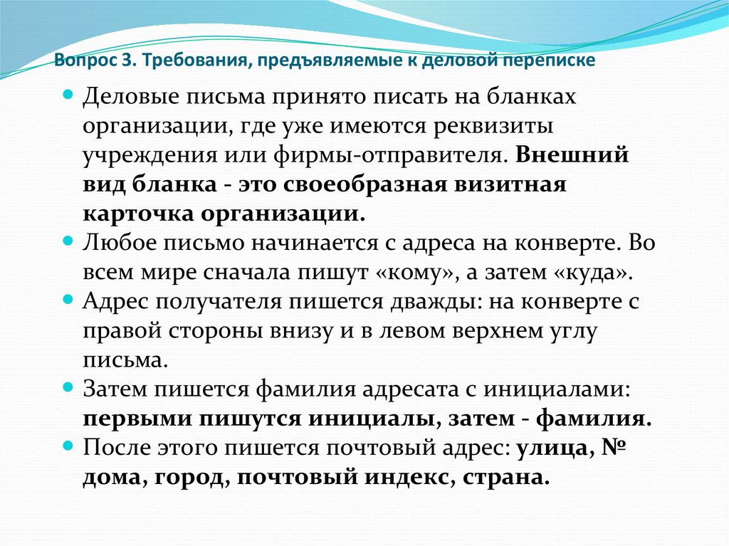 3. Требования, предъявляемые к деловой переписке.