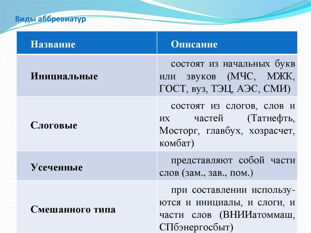 Виды аббревиатурНазвание