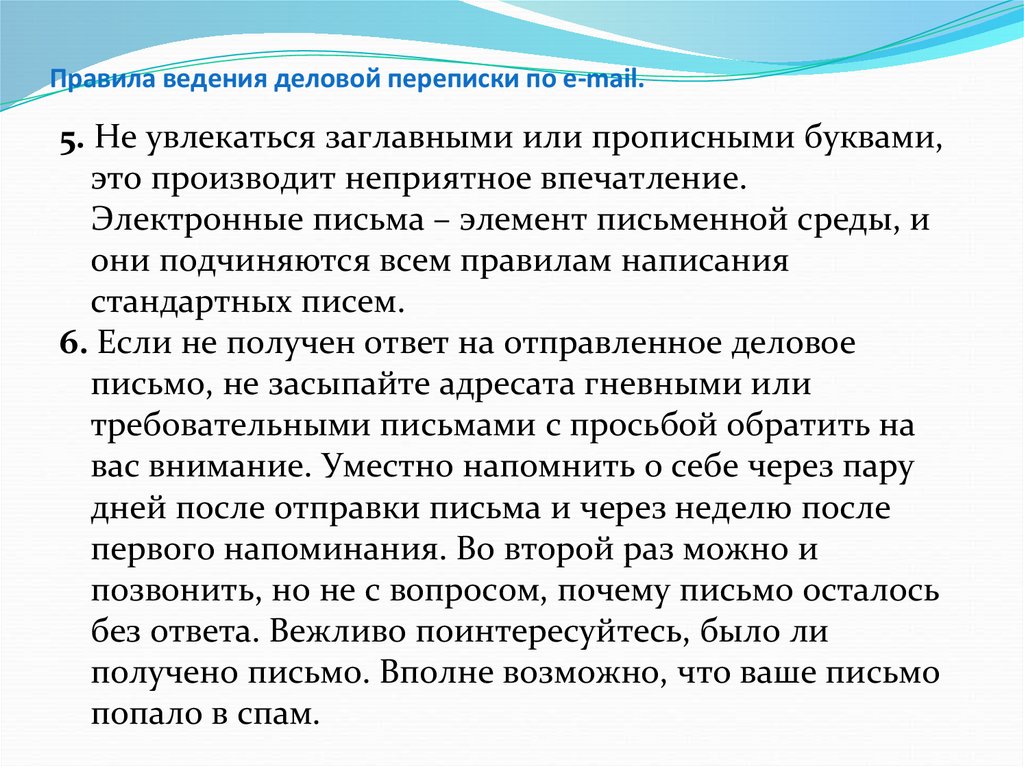 Правила ведения деловой переписки по e-mail.5. Не увлекаться заглавными или прописными буквами,