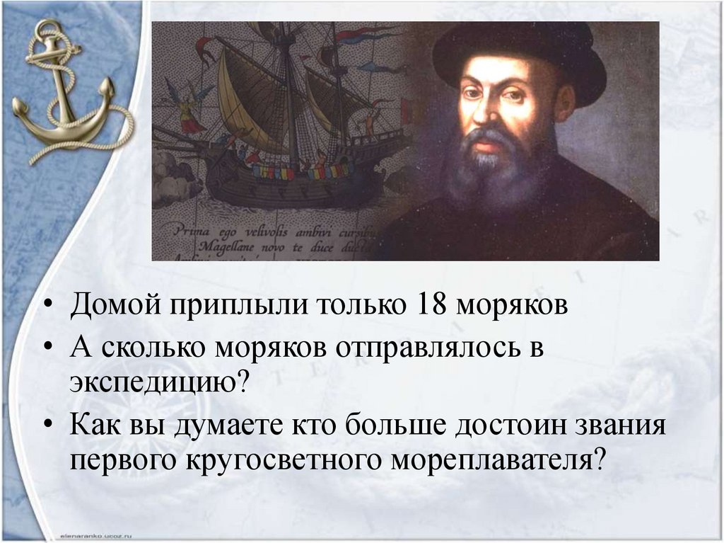 • Домой приплыли только 18 моряков• А сколько моряков отправлялось в