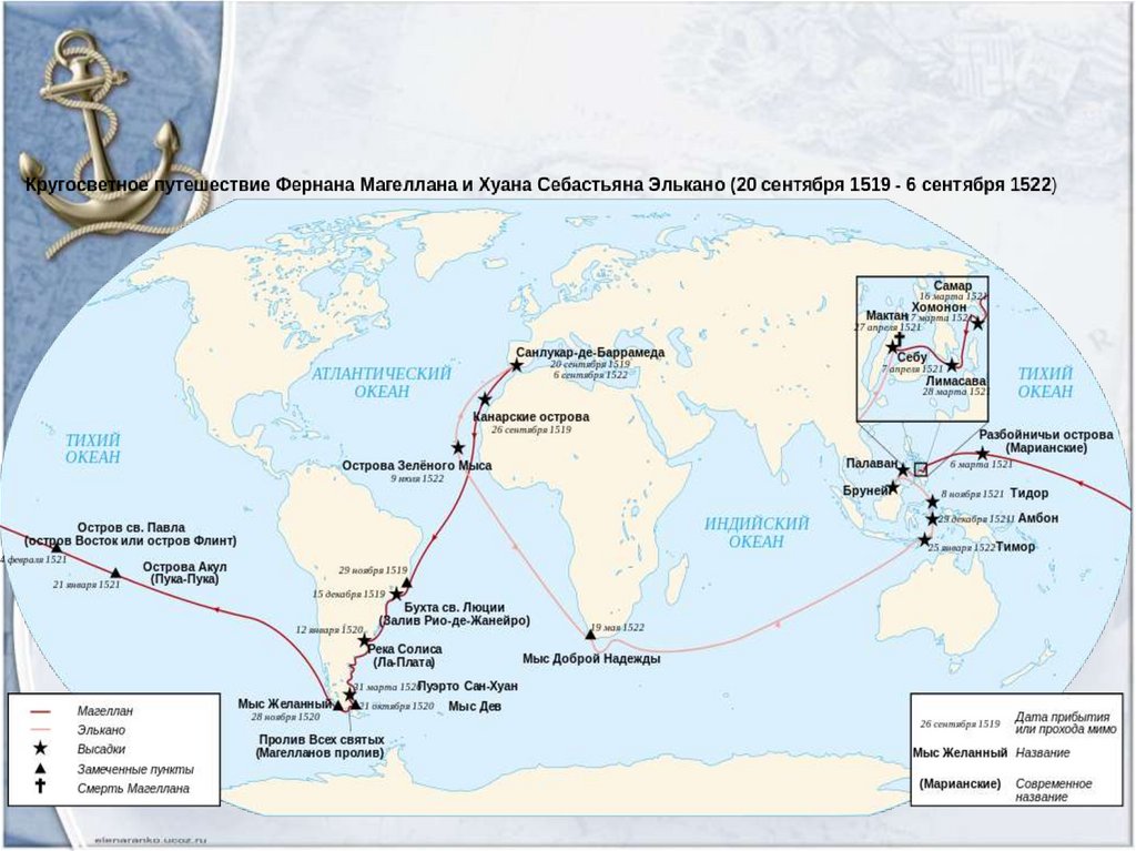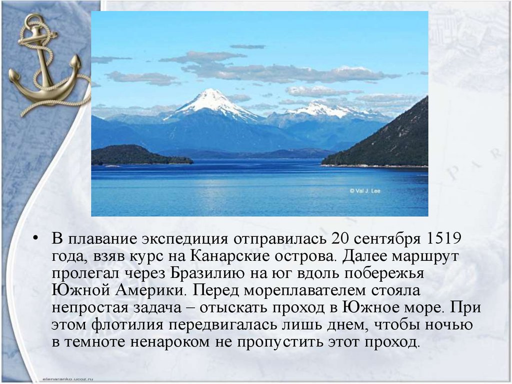 • В плавание экспедиция отправилась 20 сентября 1519года, взяв курс на Канарские острова. Далее маршрут