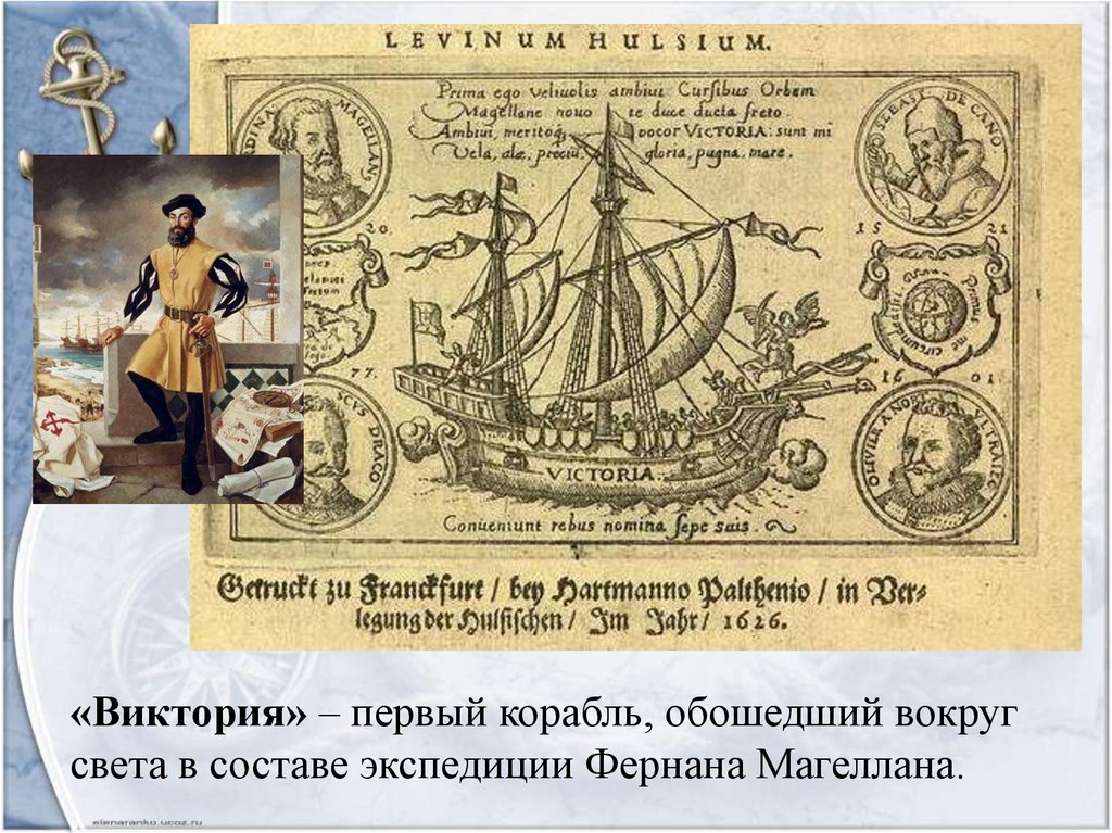 «Виктория» – первый корабль, обошедший вокругсвета в составе экспедиции Фернана Магеллана.