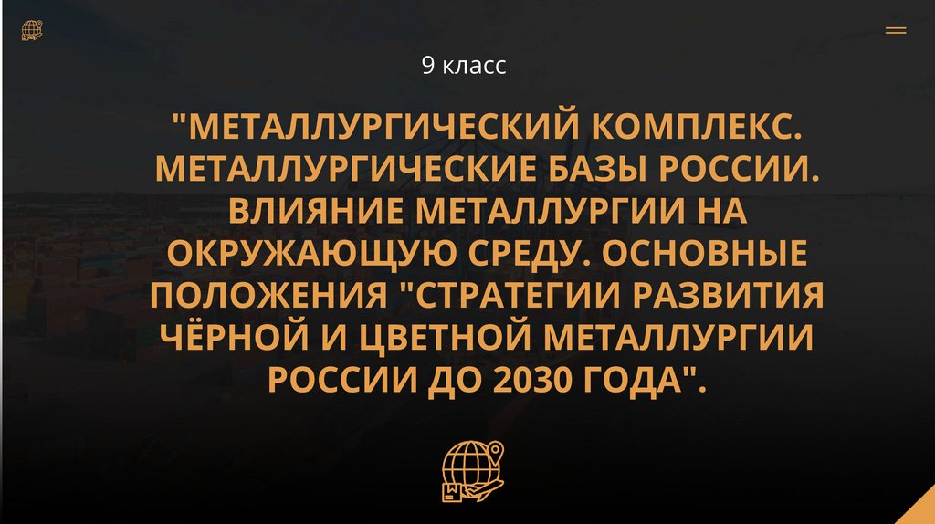 9 класс"МЕТАЛЛУРГИЧЕСКИЙ КОМПЛЕКС.