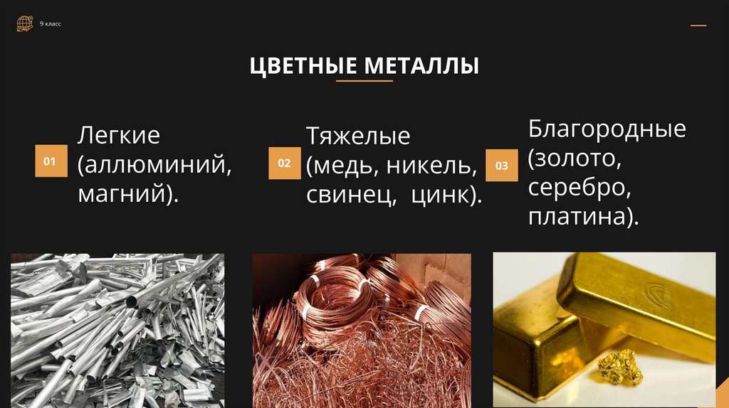9 классЦВЕТНЫЕ МЕТАЛЛЫ