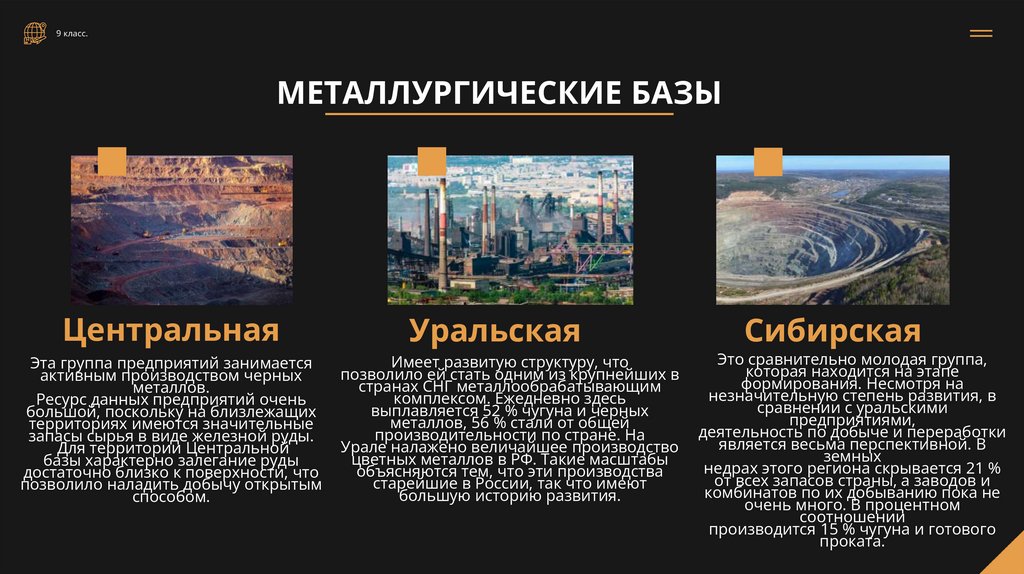 9 класс.МЕТАЛЛУРГИЧЕСКИЕ БАЗЫ
