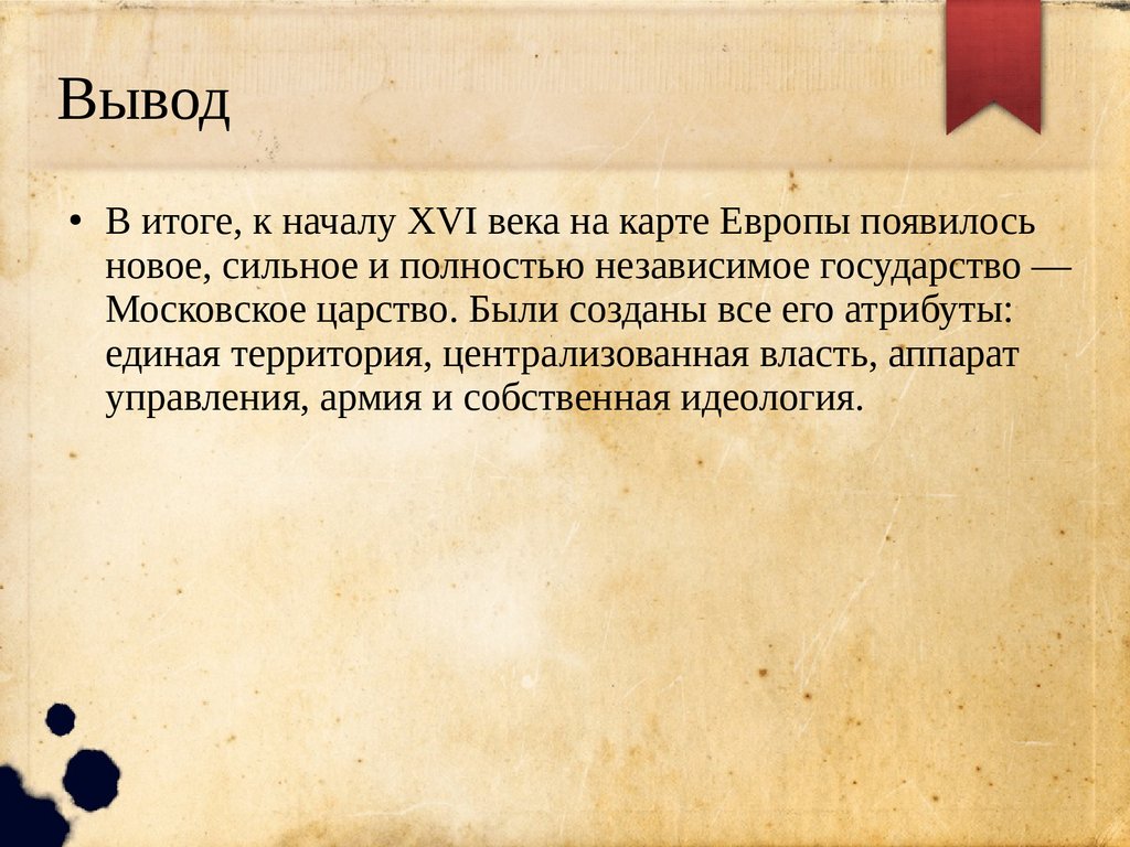 ВыводВ итоге, к началу XVI века на карте Европы появилось