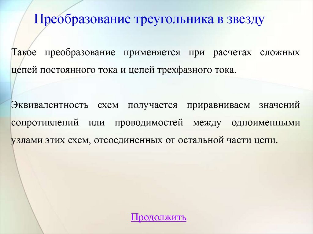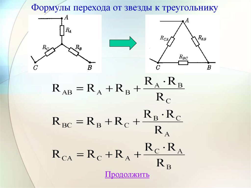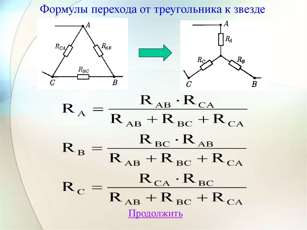 Формулы перехода от треугольника к звездеПродолжить