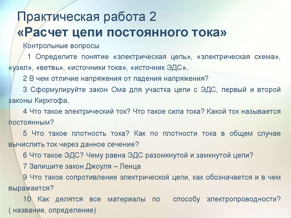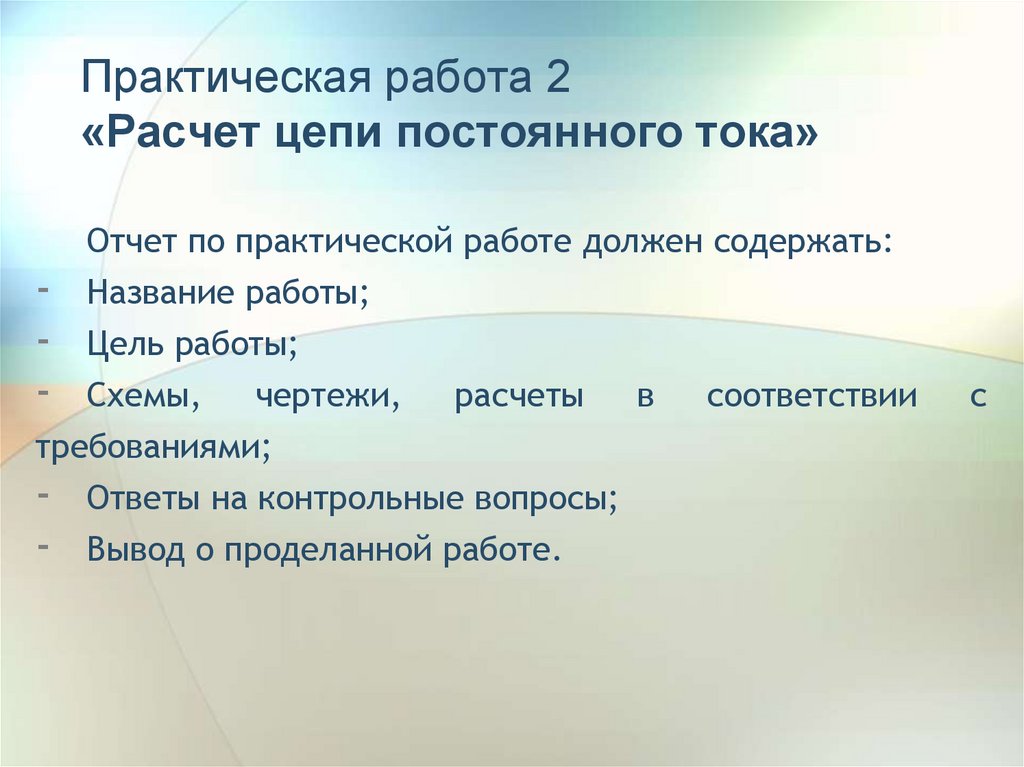 Основные теоретические сведенияПостоянным называется электрический