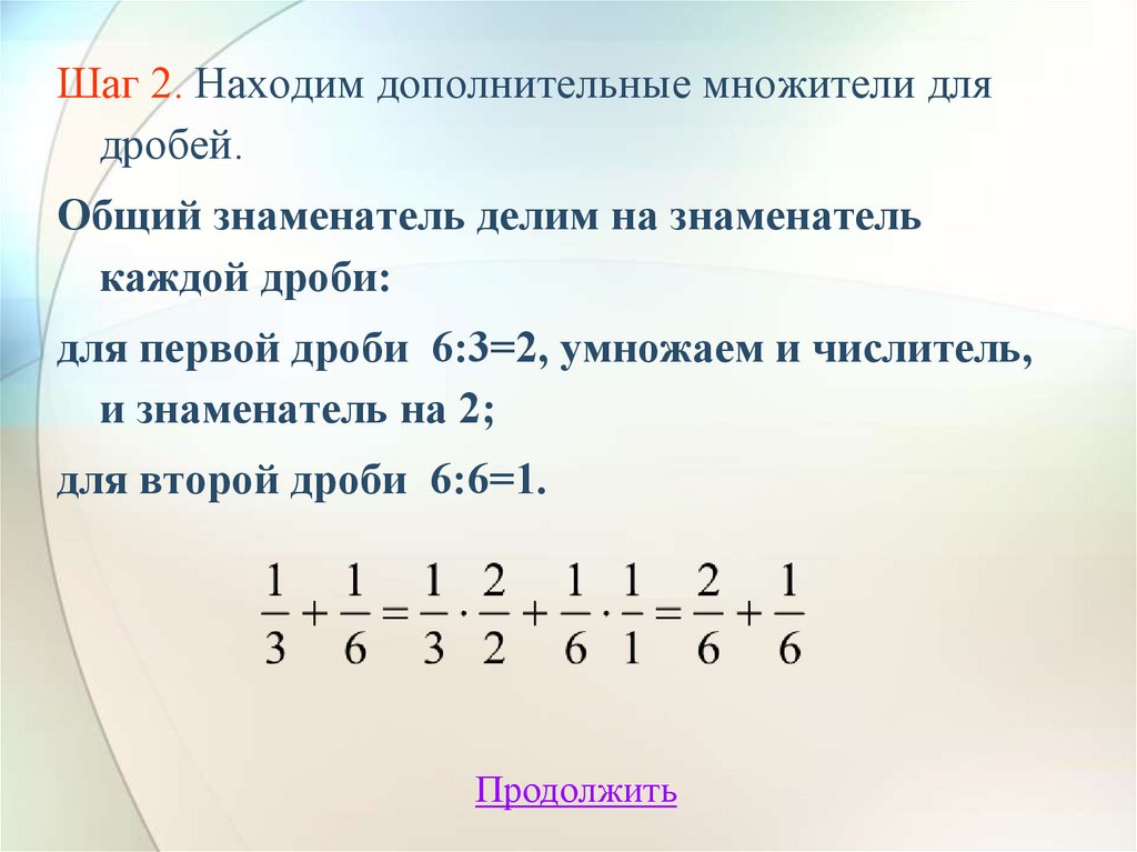 Шаг 2. Находим дополнительные множители длядробей.