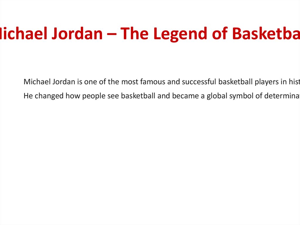 Michael Jordan – The Legend of BasketbaMichael Jordan is one of the most famous and successful basketball players in hist