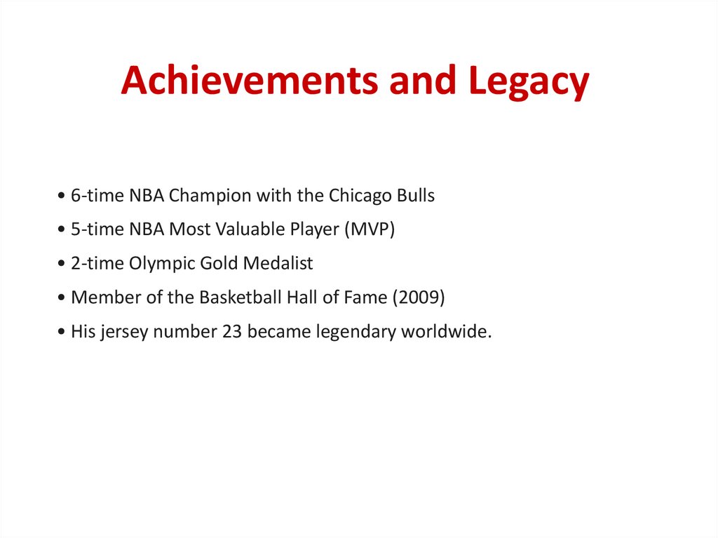 Achievements and Legacy• 6-time NBA Champion with the Chicago Bulls