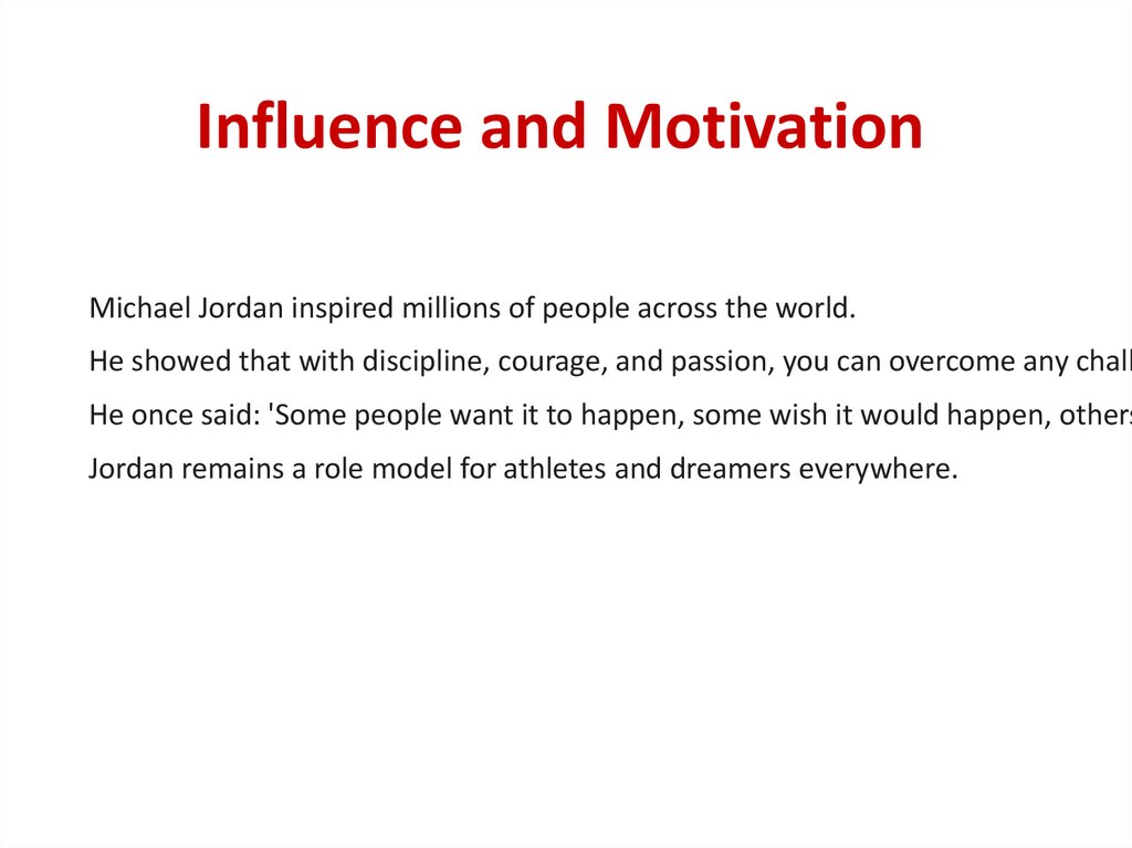 Influence and MotivationMichael Jordan inspired millions of people across the world.