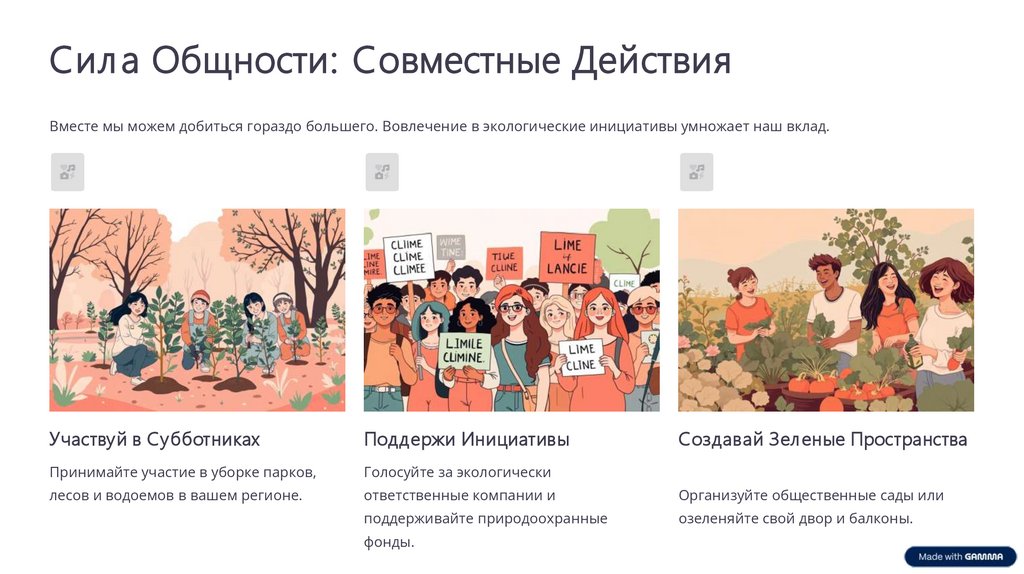 Сил а Общности: Совместные ДействияВместе мы можем добиться гораздо большего. Вовлечение в экологические инициативы умножает наш вклад.