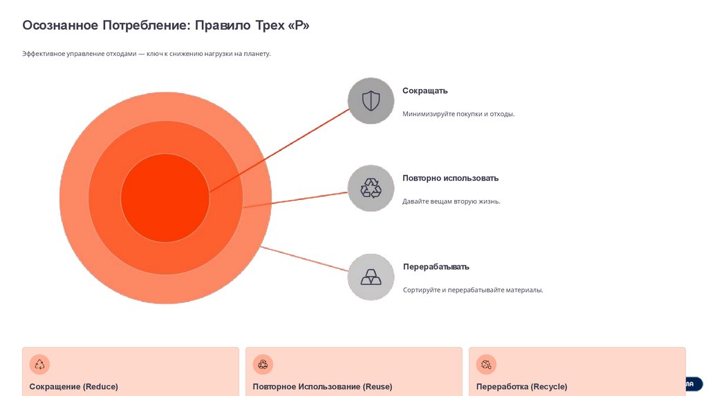 Осознанное Потребление: Правило Трех «Р»Эффективное управление отходами — ключ к снижению нагрузки на планету.