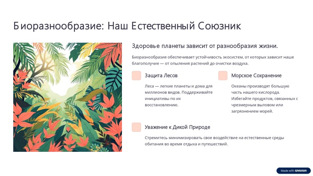 Б иоразнообразие: Наш Е стественный СоюзникЗдоровь е планеты зависит от разнообразия жизни.