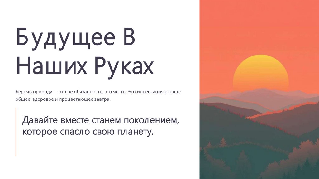 Мы должны сохранить красоту и разнообразие мира для будущих поколений.