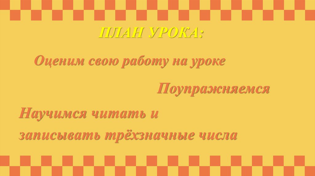 ПЛАН УРОКА:Оценим свою работу на уроке