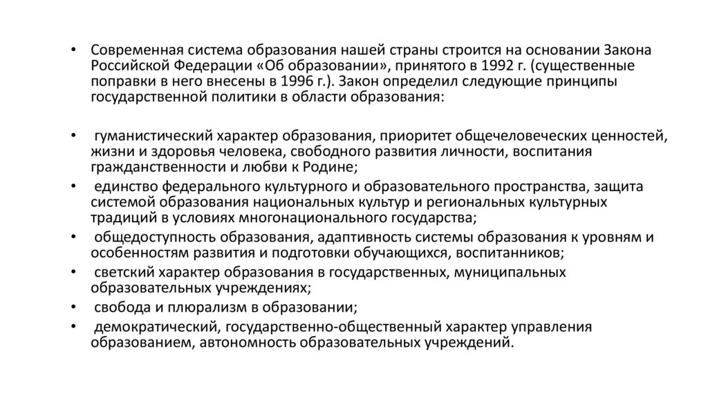 • Образование выступает историко-культурным