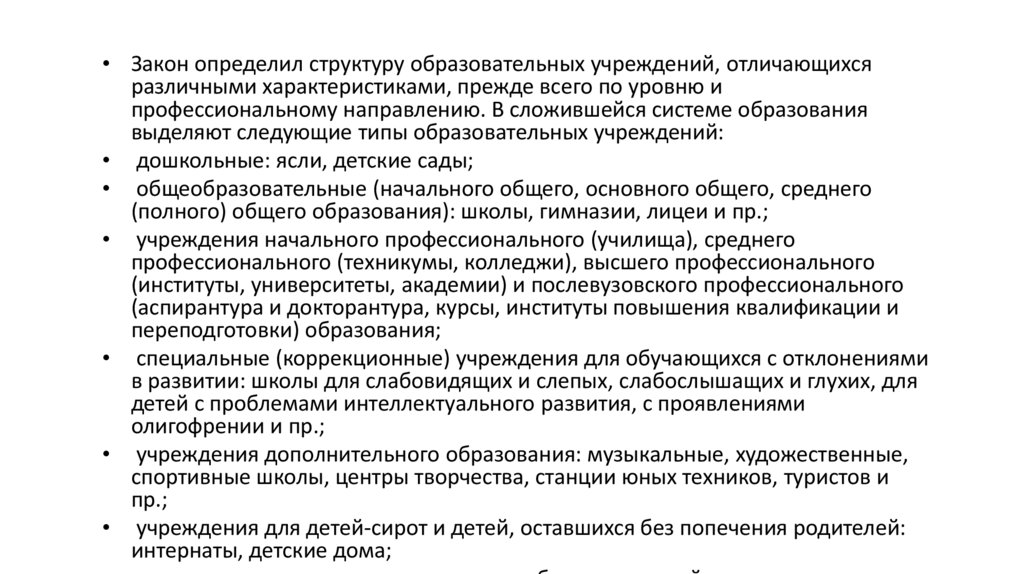учебные заведения: детские сады, школы, колледжи, университеты и