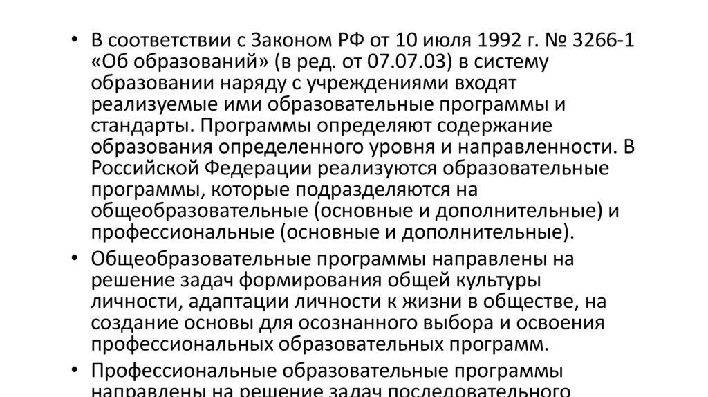 • Поскольку содержание образования черпается и пополняется из