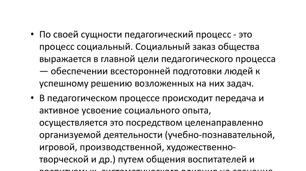 педагогического процесса имеет своей конечной целью