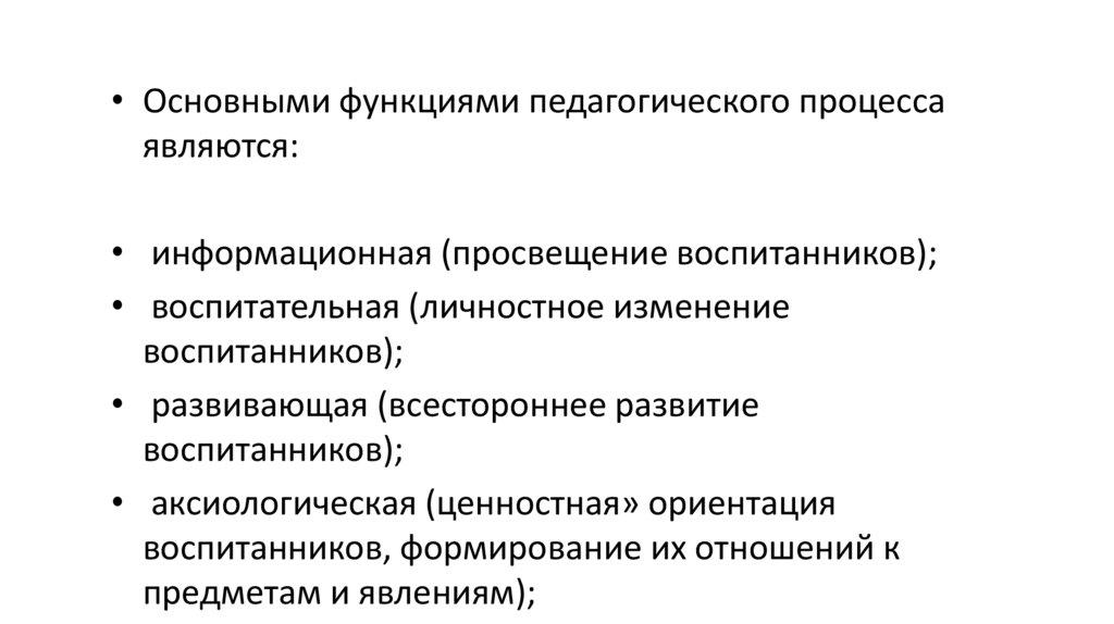 • Основными функциями педагогического процессаявляются: