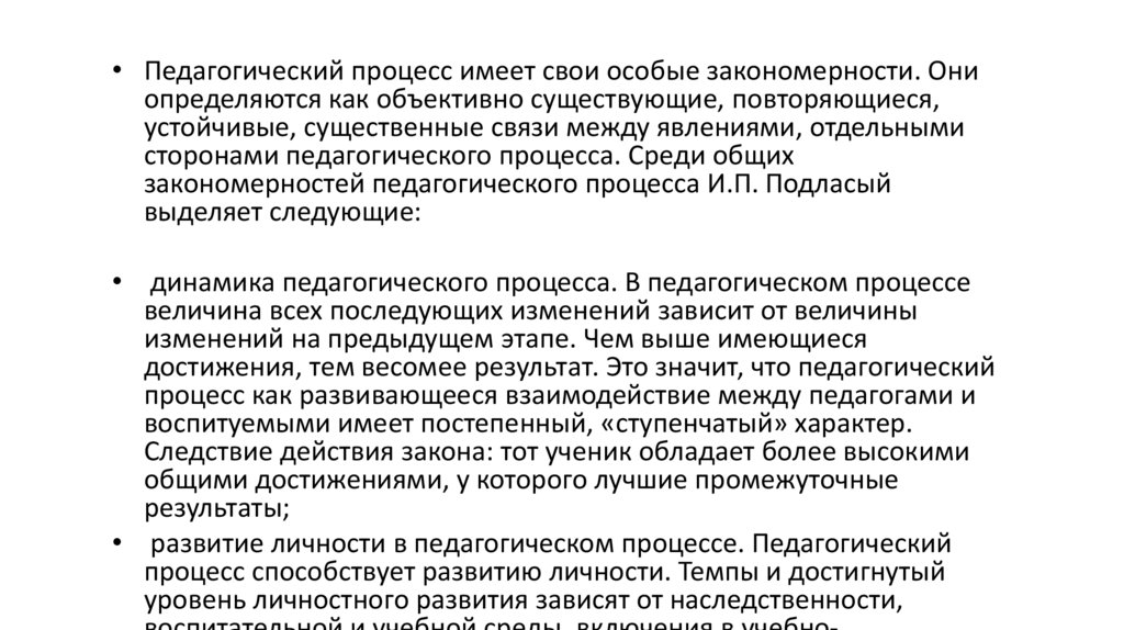 закономерностей педагогического процесса И.П. Подласый
