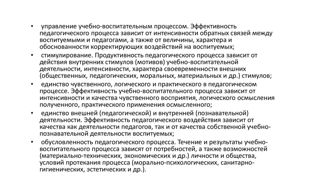 обусловленность педагогического процесса. Течение и результаты учебновоспитательного процесса зависят от потребностей, а также возможностей