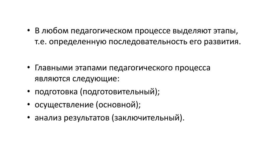 • Главными этапами педагогического процесса