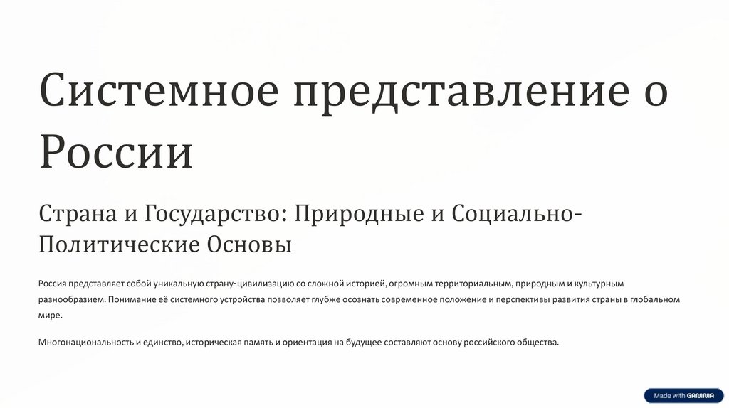 Россия представляет собой уникальную страну-цивилизацию со сложной историей, огромным территориальным, природным и культурным