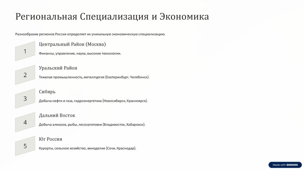 Региональная Специализация и ЭкономикаРазнообразие регионов России определяет их уникальную экономическую специализацию.