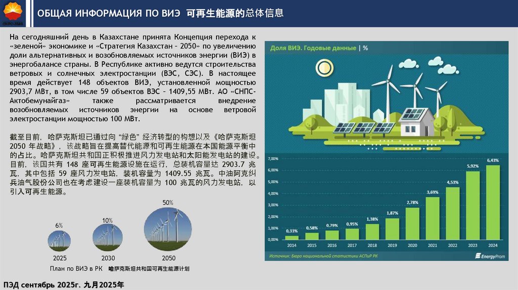 ОБЩАЯ ИНФОРМАЦИЯ ПО ВИЭ 可再生能源的总体信息На сегодняшний день в Казахстане принята Концепция перехода к