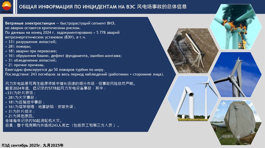 ОБЩАЯ ИНФОРМАЦИЯ ПО ИНЦИДЕНТАМ НА ВЭС 风电场事故的总体信息Ветряные электростанции — быстрорастущий сегмент ВИЭ,