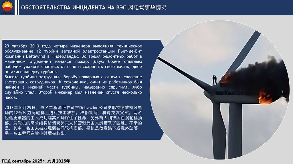 ОБСТОЯТЕЛЬСТВА ИНЦИДЕНТА НА ВЭС 风电场事故情况29 октября 2013 года четыре инженера выполняли техническое
