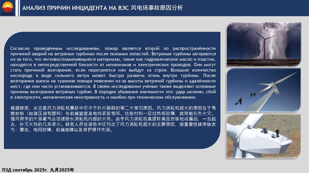 АНАЛИЗ ПРИЧИН ИНЦИДЕНТА НА ВЭС 风电场事故原因分析Согласно проведённым исследованиям, пожар является второй по распространённости