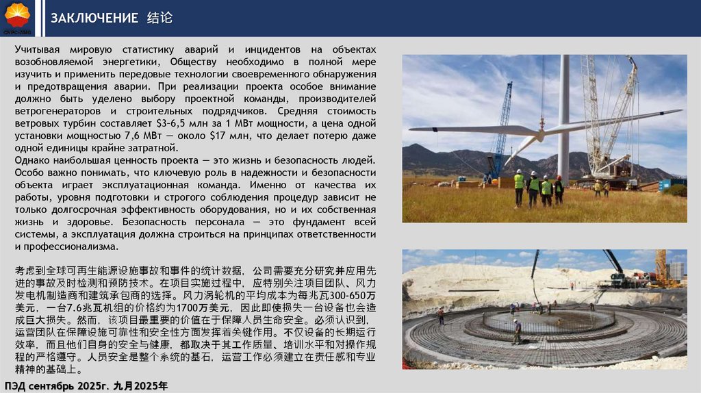 ЗАКЛЮЧЕНИЕ 结论Учитывая мировую статистику аварий и инцидентов на объектах